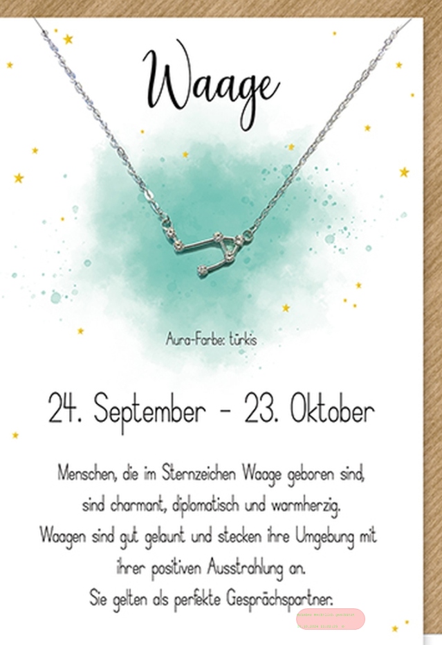 - Karte 11,5x17cm, mit Sternzeichenhalskette Waage - VE 6