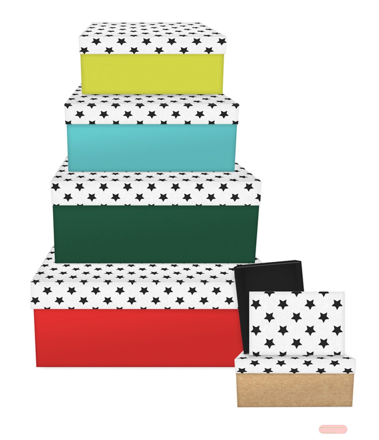 - Kartonage 6er Set, grössen gemäss Katalog, Gras+Kraftpapier Just Stars schwarz