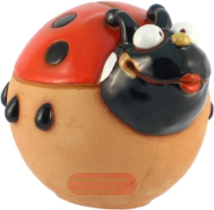 - Keramik Spardose, 100% Handarbeit, Marienkäfer, 12cm, mit Metallschloss - VE 3