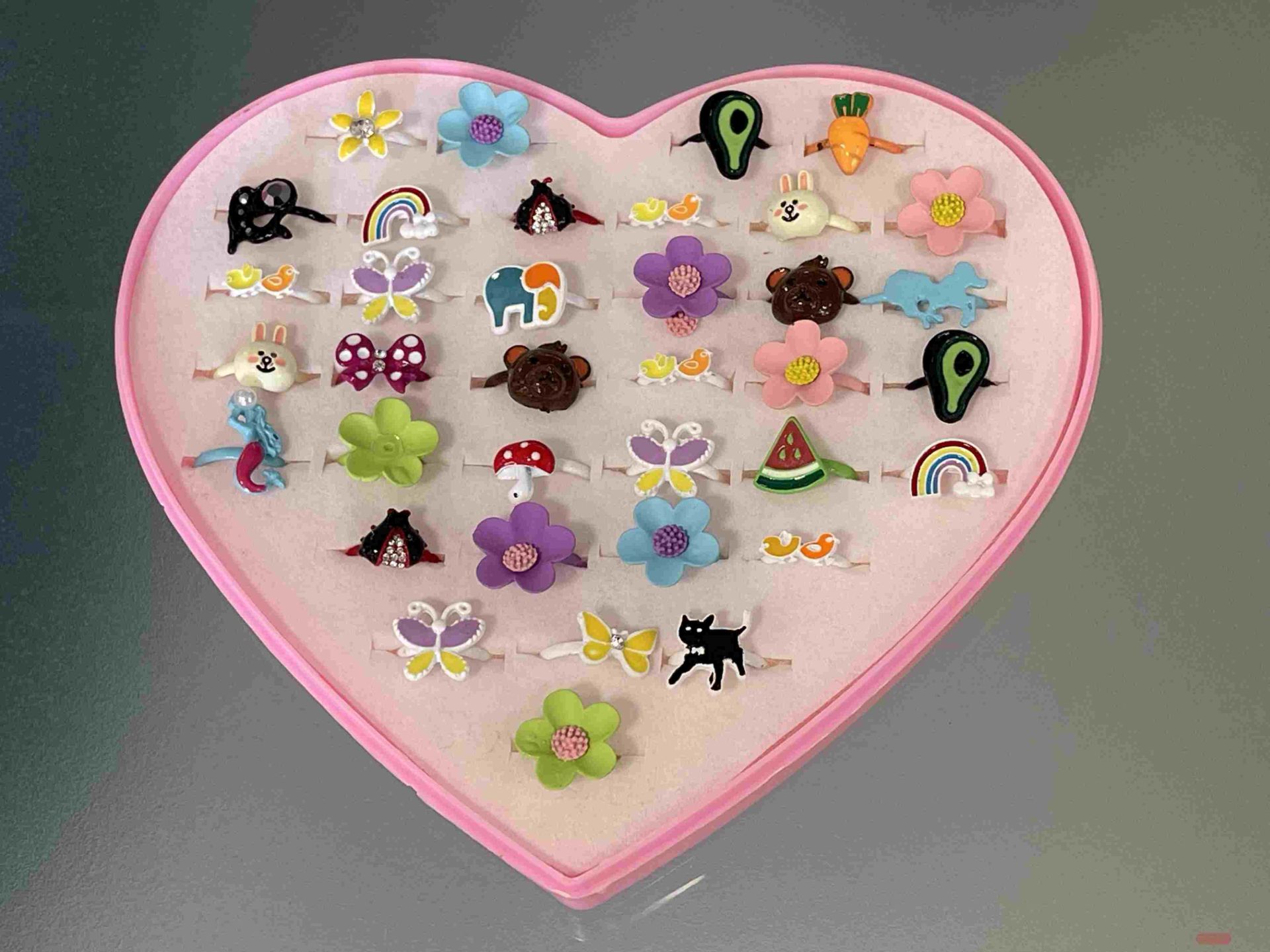 - Kinder-Fingerringe mehrfach gemischt, grösse verstellbar, im Herz-Display - VE 36