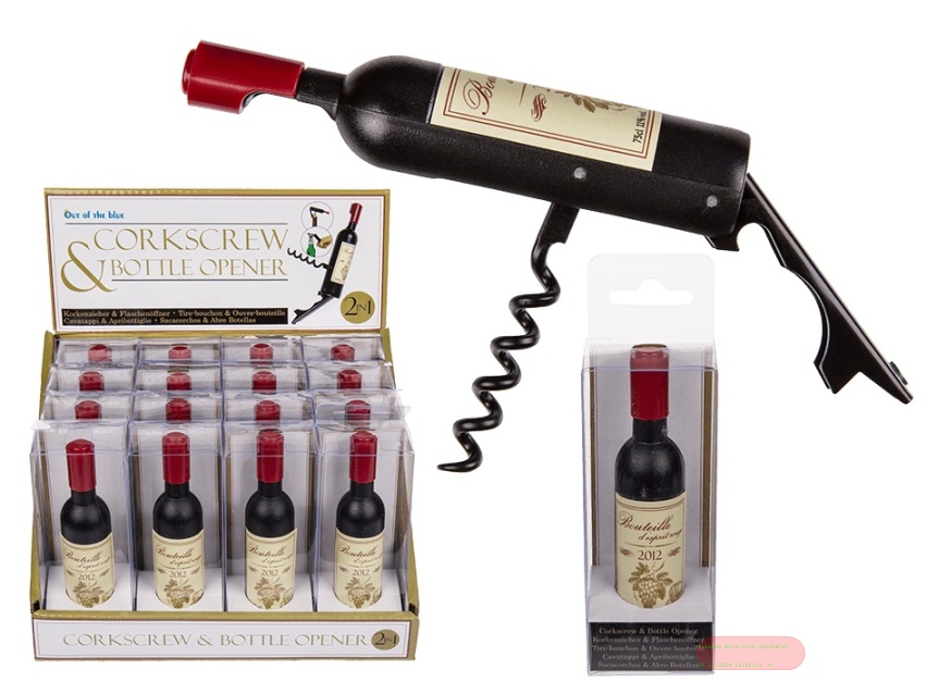 - Korkenzieher & Flaschenöffner Weinflasche, ca.11cm, im Display - VE 16