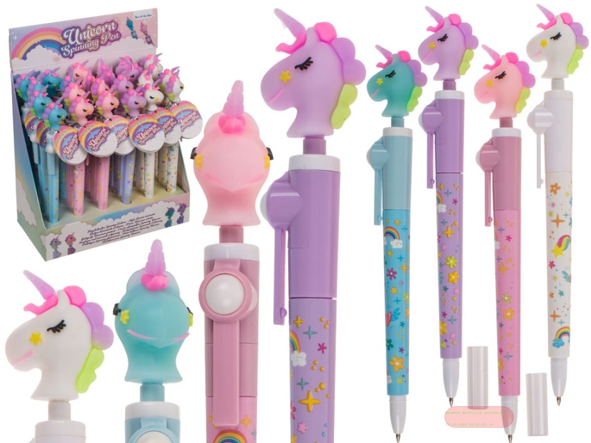 - Kugelschreiber Spinning Einhorn, ca.19cm, 4-fach gemischt im Display - VE 24