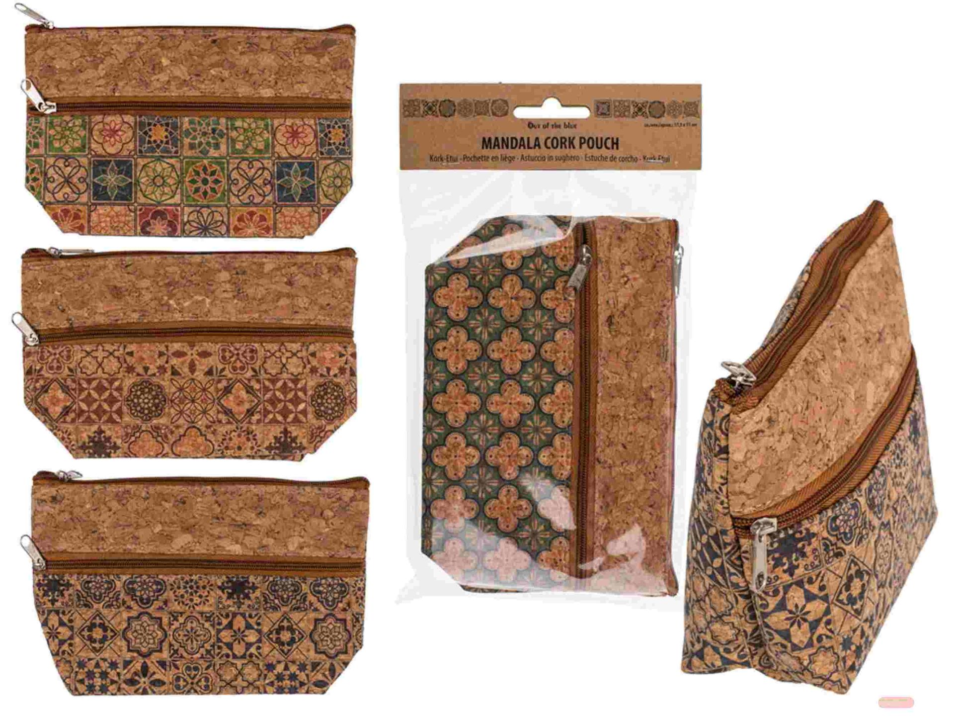 - Kulturbeutel/Tasche Kork, Reissverschluss, Mandala, ca.17,5x11cm, 4-fach ass. - VE 12