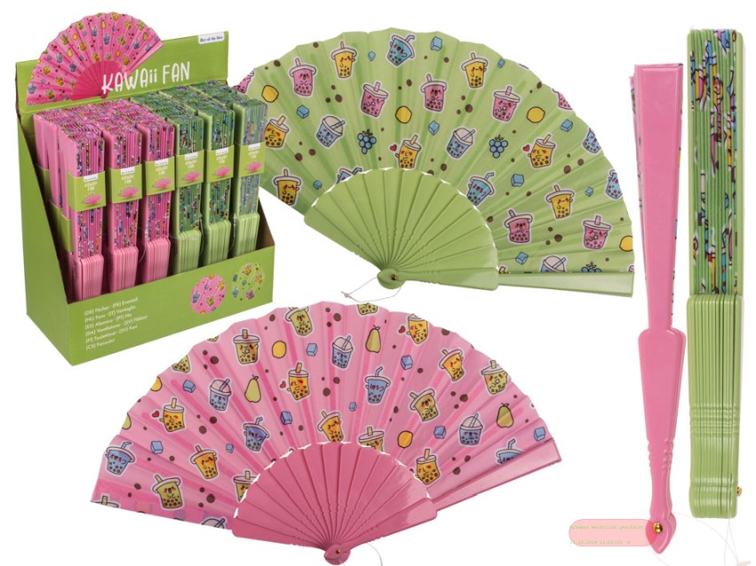 - Kunststoff-Fächer, Bubble Tea, ca.23x40cm, 2 x ass. im Display - VE 24