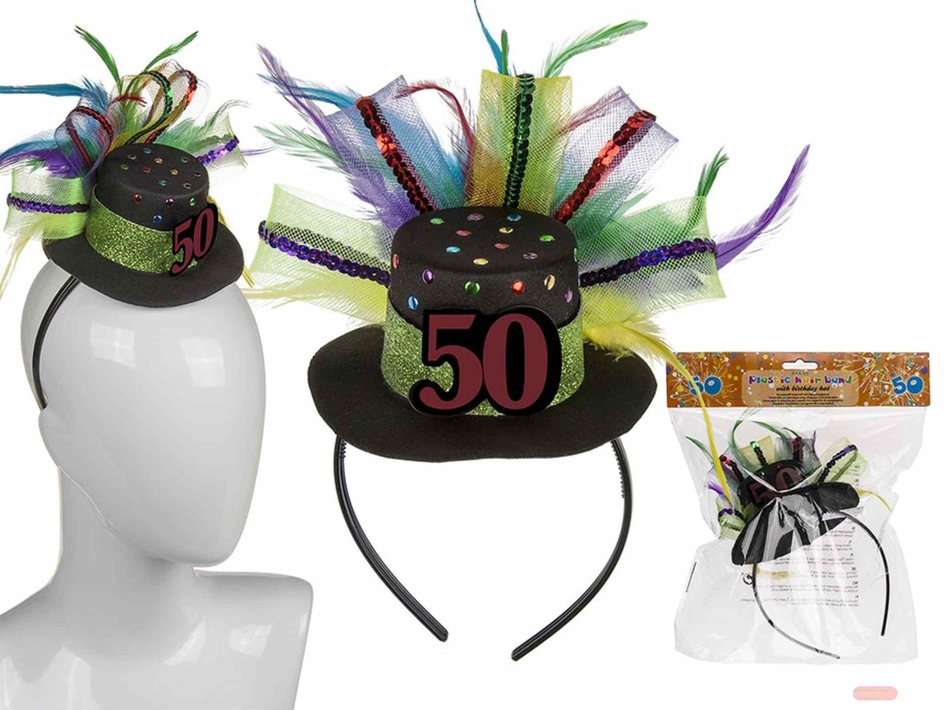 - Kunststoff-Haarreif mit Geburtstagshut & Deko, 21x24cm, Zahl 50 - VE 6