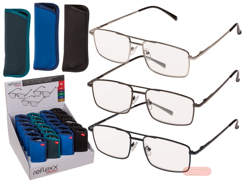 - Lesebrille mit Metallgestell in Etui, 3 Farben gemischt, 5 Stärken, im Display - VE 24