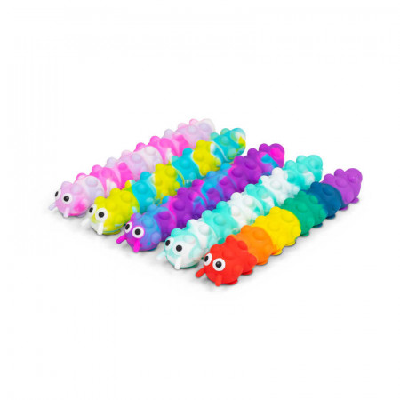 - LIGHT UP SUCTION PUSH POPPER CATERPILLAR, Raupe mit Licht gemischt,ca.26cm,Display - VE 36