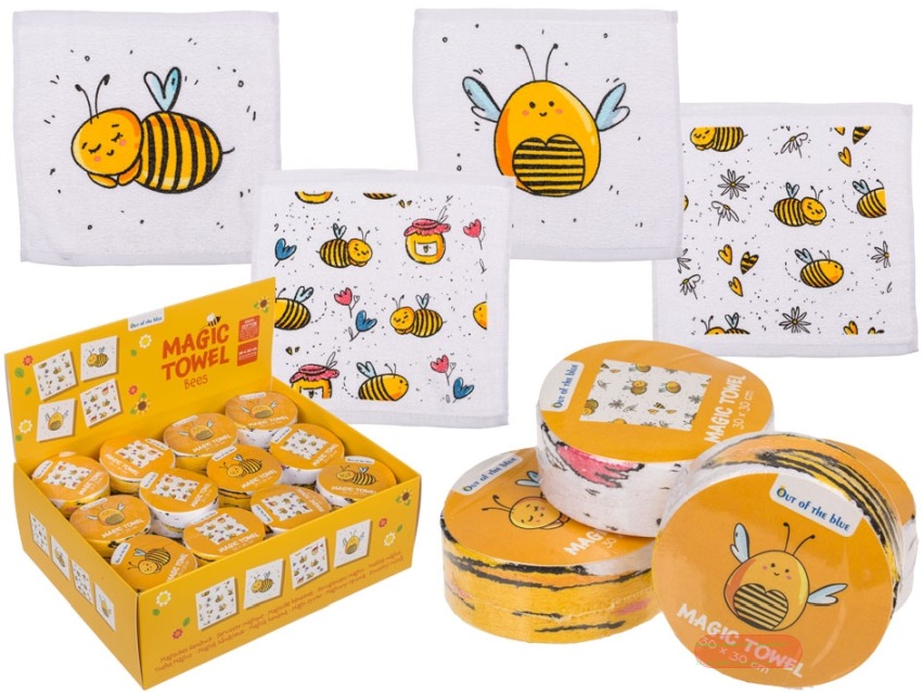 - Magic Towel Bienen aus Baumwolle, 30x30cm, 4-fach ass. im Display - VE 48