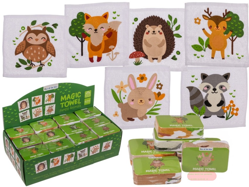 - Magic Towel Waldtiere aus Baumwolle, 30x30cm, 6-fach ass. im Display - VE 48