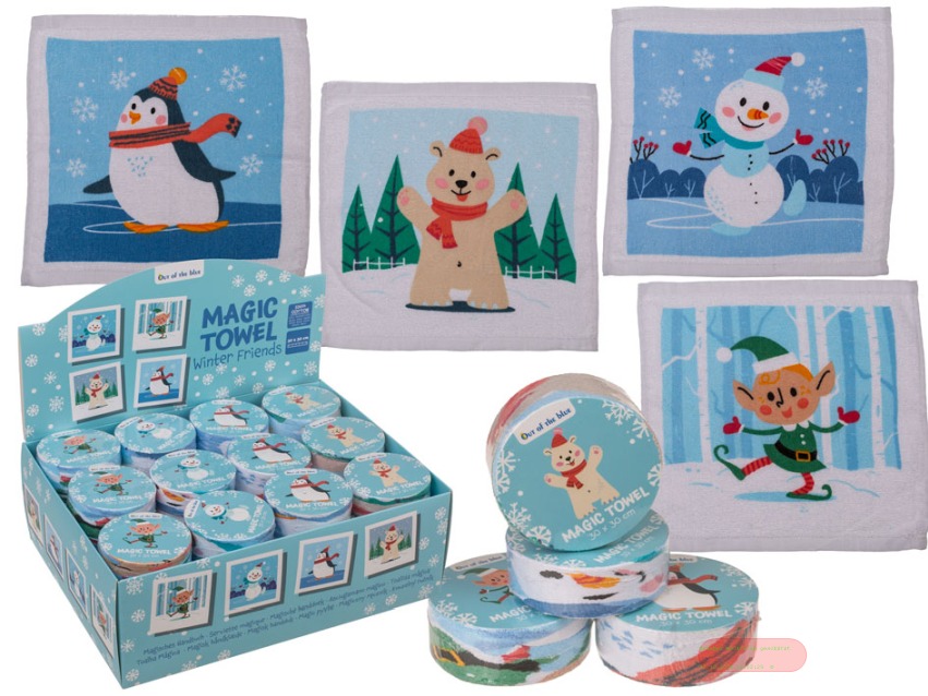- Magic Towel Winter Friends, aus Baumwolle, 30x30cm, 4-fach ass. im Display - VE 48