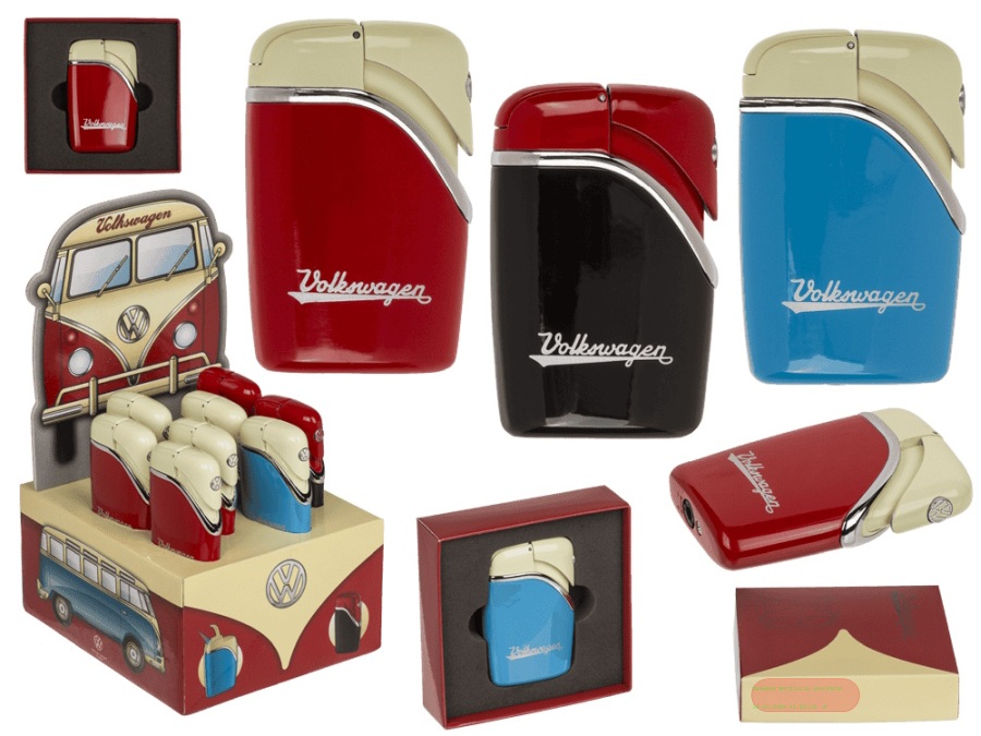 - Metall-Sturmfeuerzeug, VW-Emblem Schriftzug, ca.8cm, 3-fach sortiert, Box, Display - VE 8