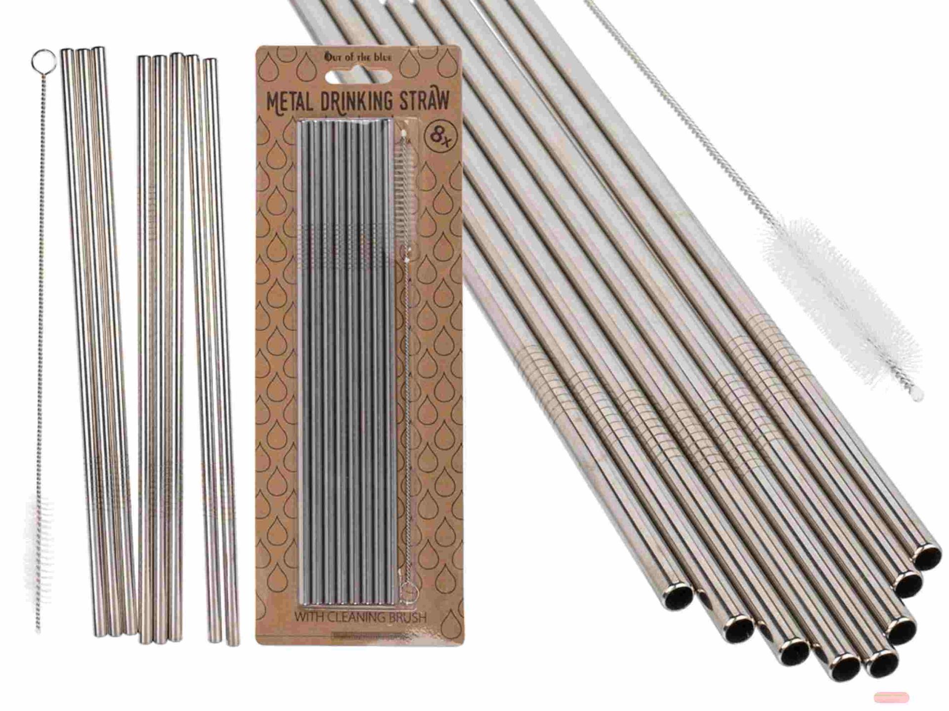 - Metall-Trinkhalme, ca.23cm, 8 Stk. pro Pack, mit Bürste, Box - VE 6