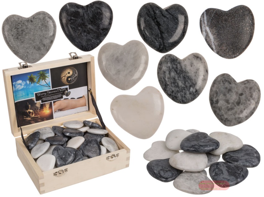 - Naturstein Worry Stones, herzförmig, ca.4,5cm, mehrfach ass. in Holzkiste - VE 36