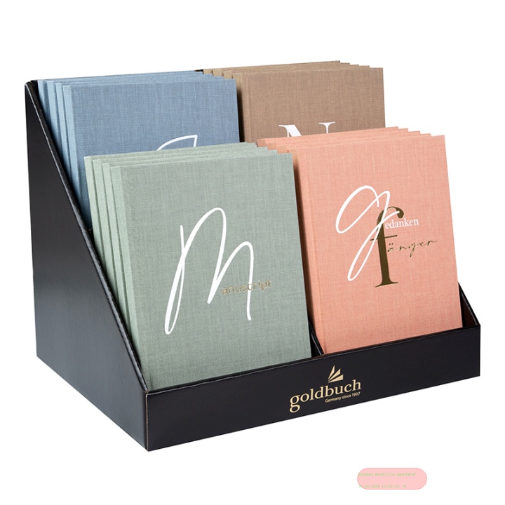 - Notizbuch DIN A5 - 200 S.blanko, Leinen, 4-fach ass., Display, Ideenreich - VE 16