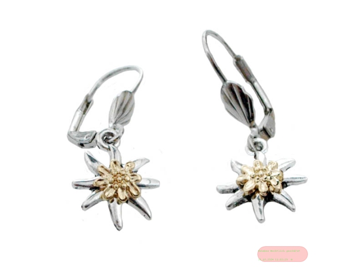 - Ohrgehängepaar Edelweiss Bicolor in zwei Farben platiniert, Display - VE 12