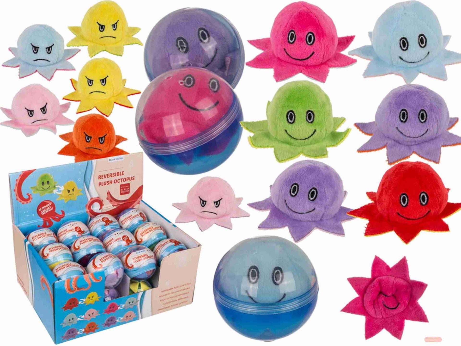 - Oktopus Plüsch-Wendetier, in Kapsel, ca.5x10cm, mehrfach gemischt, Display - VE 24 (SR)