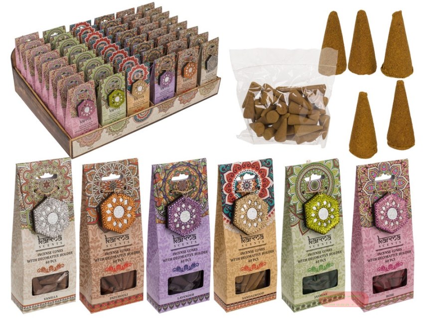 - Räucherkegel mit Dekohalter, 40 Stk. pro Set, 6-fach gemischt, Display - VE 48