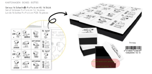- Schachtel-Kartonage 9x9x5,7cm, Sortierung Snoopy schwarz-weiss gemischt - VE 16