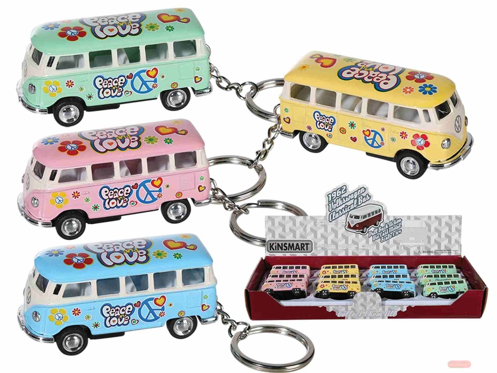 - Schlüsselanhänger Bus VW T1 1962 Peace&Love aus Metall ca.6,5cm, 4 x ass.,Display - VE 12