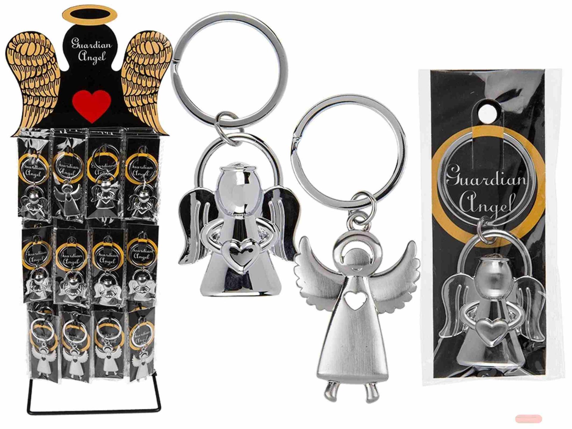 - Schlüsselanhänger Schutzengel aus Metall glanz, ca.4,5cm, 2 x ass. auf Display - VE 60