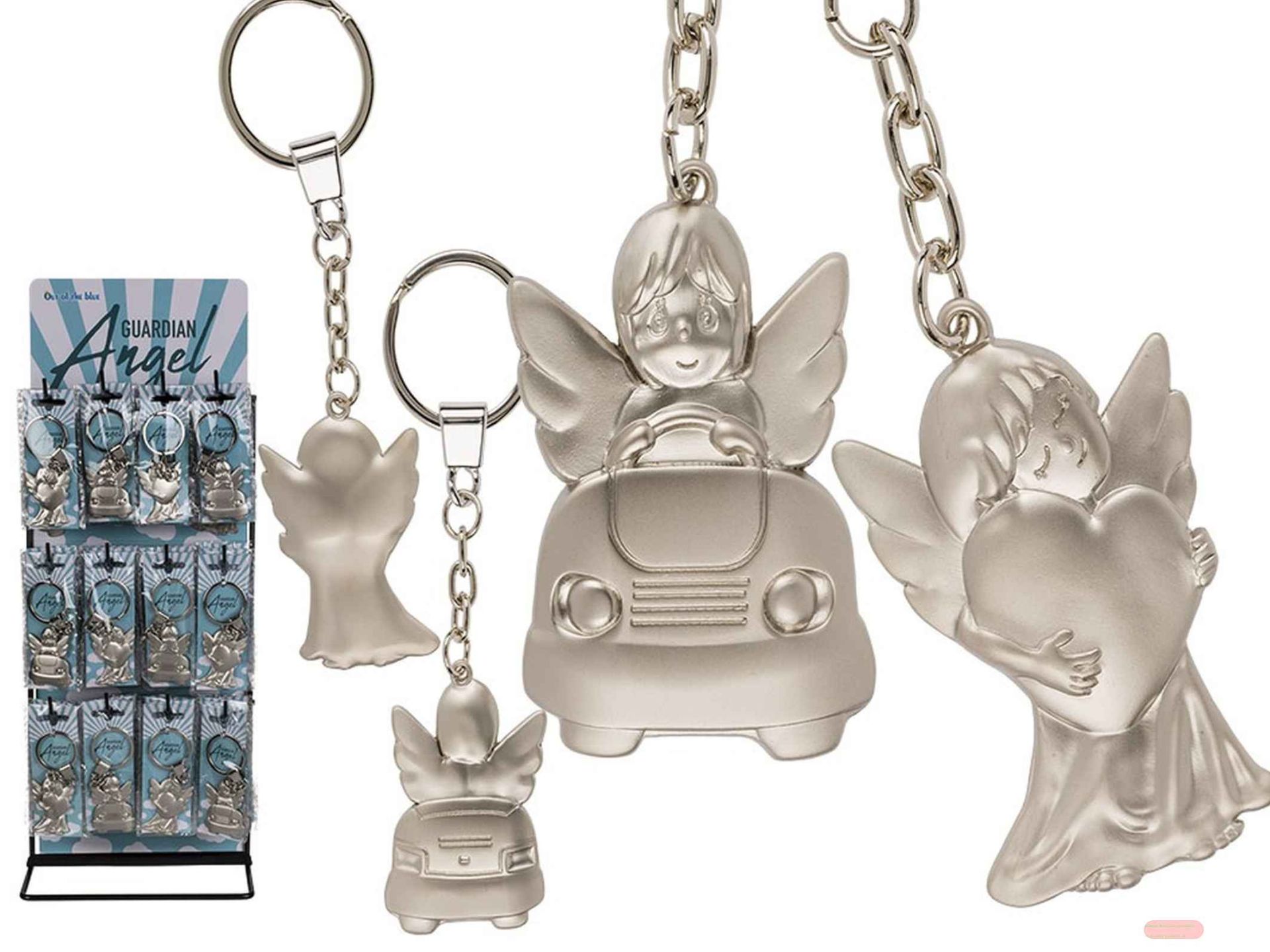 - Schlüsselanhänger Schutzengel aus Metall matt, ca.5cm, 2 x ass. auf Display - VE 60