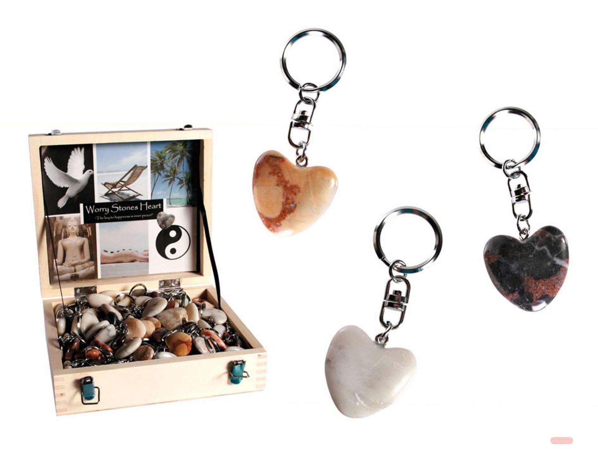 - Schlüsselanhänger Worry Hearts aus Stein ca.3cm, mehrfach ass. in Holzkiste - VE 90