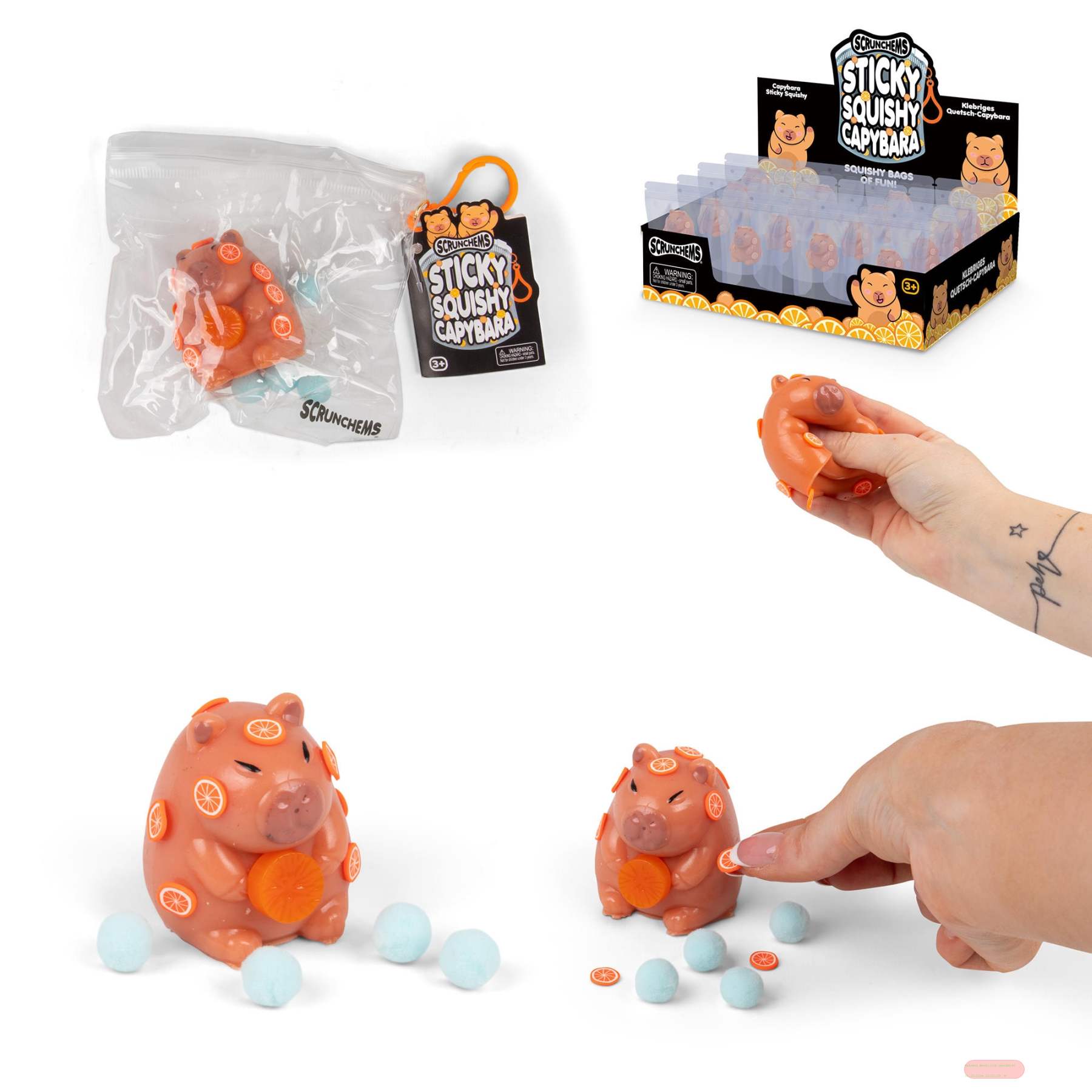 - SCRUNCHEMS STICKY SQUISHY CAPYBARA, Wasserschwein, ca.5cm, Box, Display - VE 12