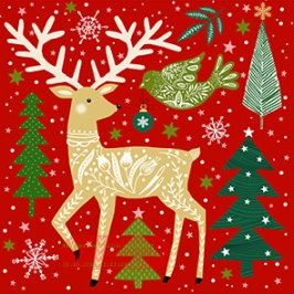 - Servietten 33x33cm, Atelier Folk Deer rot - VE 6