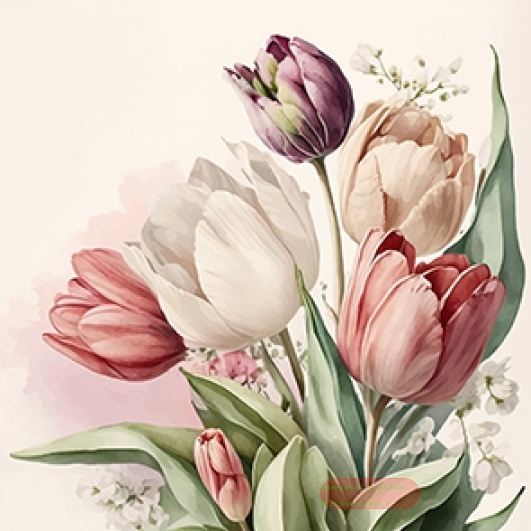 - Servietten 33x33cm, Atelier Vintage Tulip - VE 6