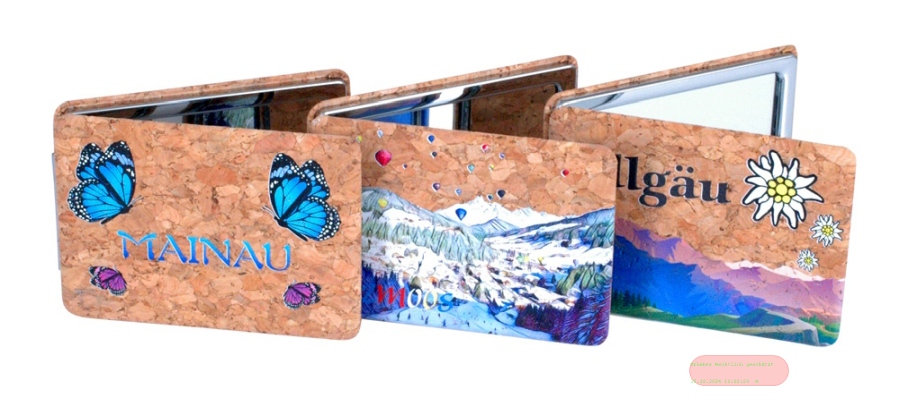 - Souvenir Kork Taschenspiegel, 8,5x6cm, in Boxen, Bild/Text nach Wunsch - VE 24
