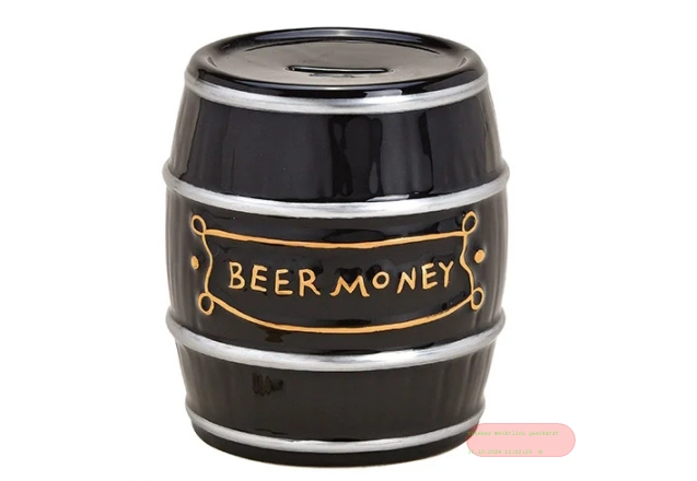 - Spardosen Fass, Beer Money, Keramik, ca.13x14x13cm - VE 2