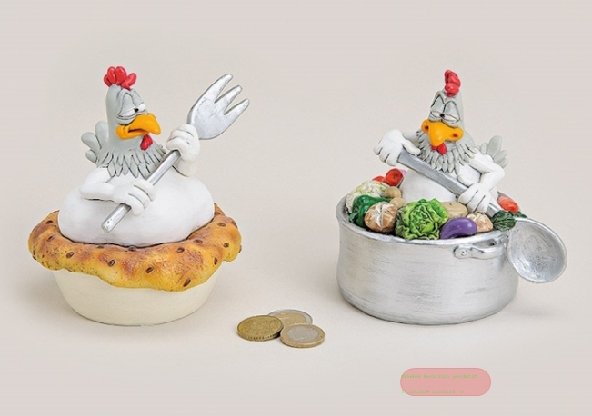 - Spardosen Huhn im Topf, Polyresin, ca.13x11cm, 2-fach ass. - VE 2