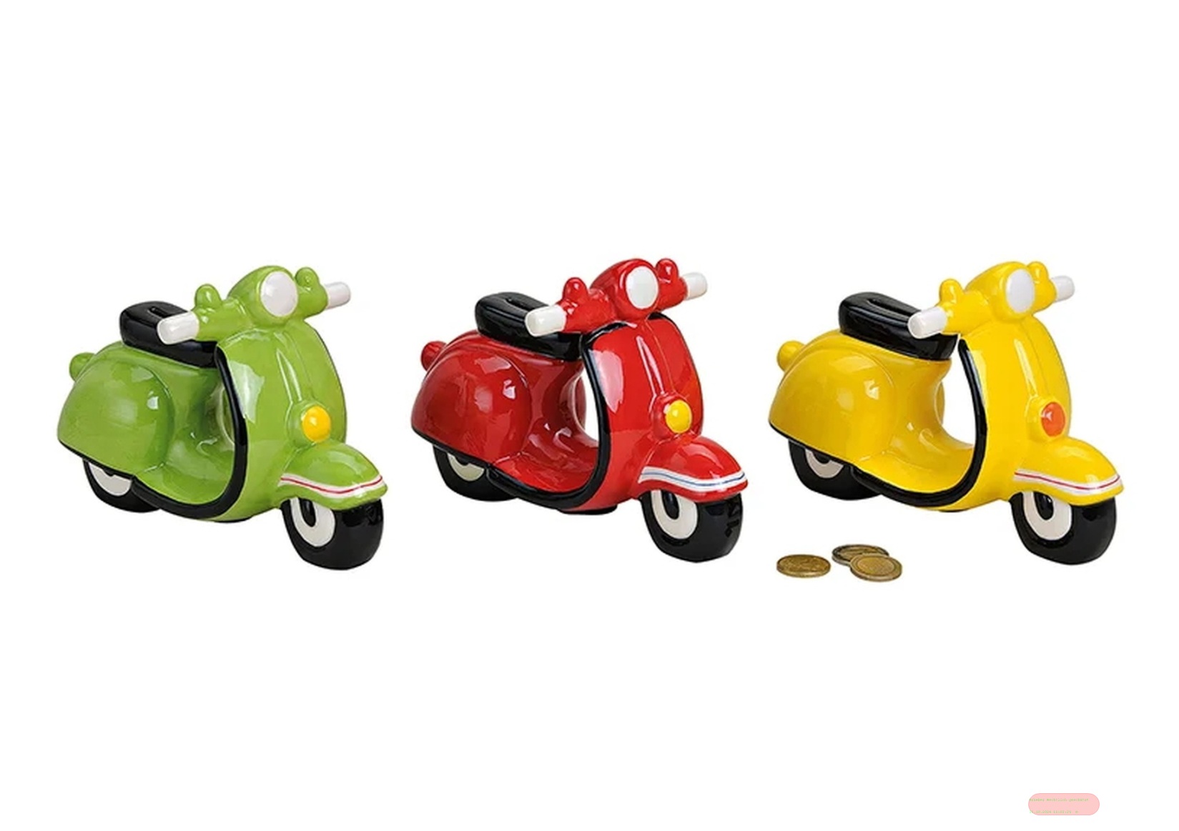 - Spardosen Motorroller, Keramik, 3-fach sortiert, ca.20x10x11cm - VE 3