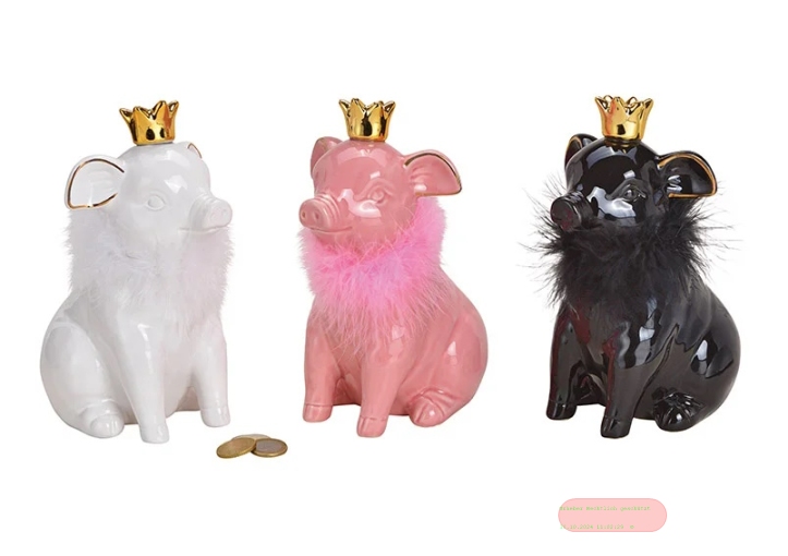 - Spardosen Schwein mit Krone, Keramik, 3-fach ass., ca.10x21x13cm - VE 3