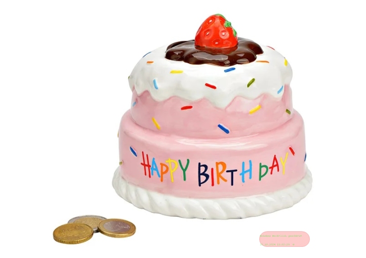 - Spardosen Torte Happy Birthday, Keramik, ca.12x12x12cm - VE 3