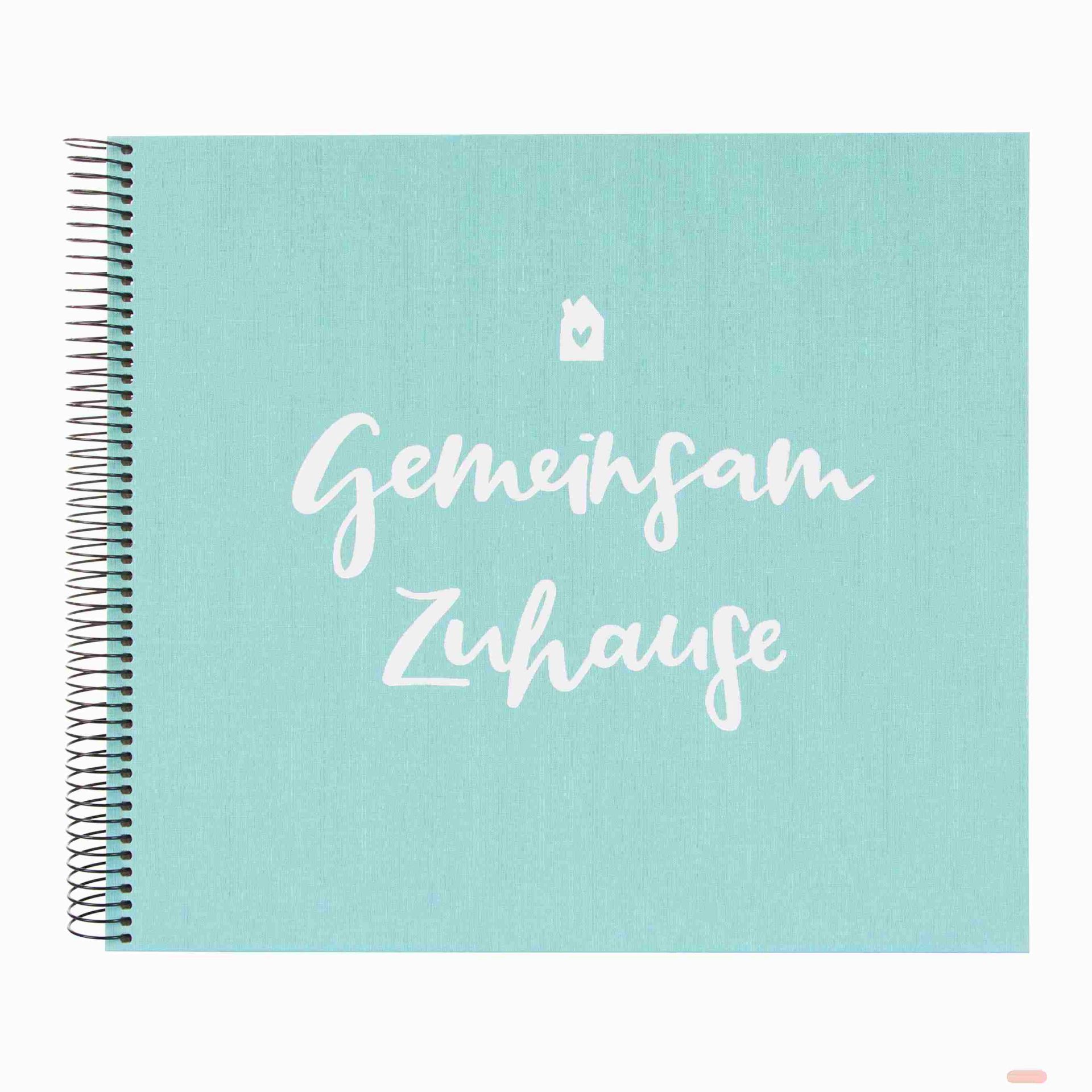 - Spiralalben 40 S.weiss, 35x30cm, Leinen, Gemeinsam Zuhause, geprägt, aqua