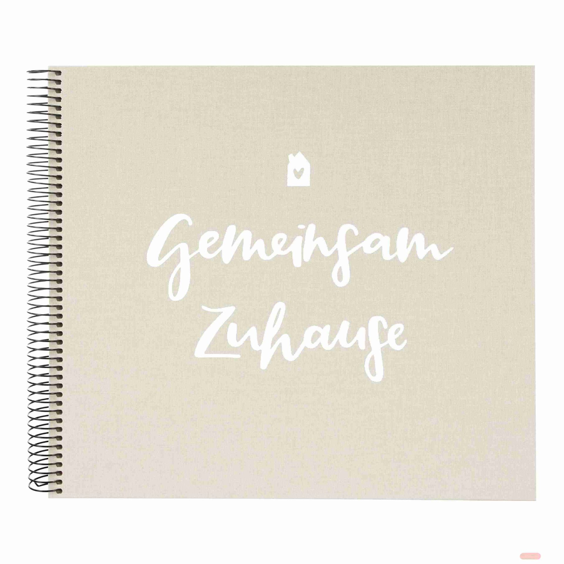 - Spiralalben 40 S.weiss, 35x30cm, Leinen, Gemeinsam Zuhause,geprägt, sandgrau