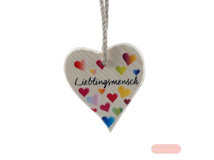 - Spruchherz Holz klein, 9x10cm, Fichte 15mm mit Kordel, Lieblingsmensch - VE 4