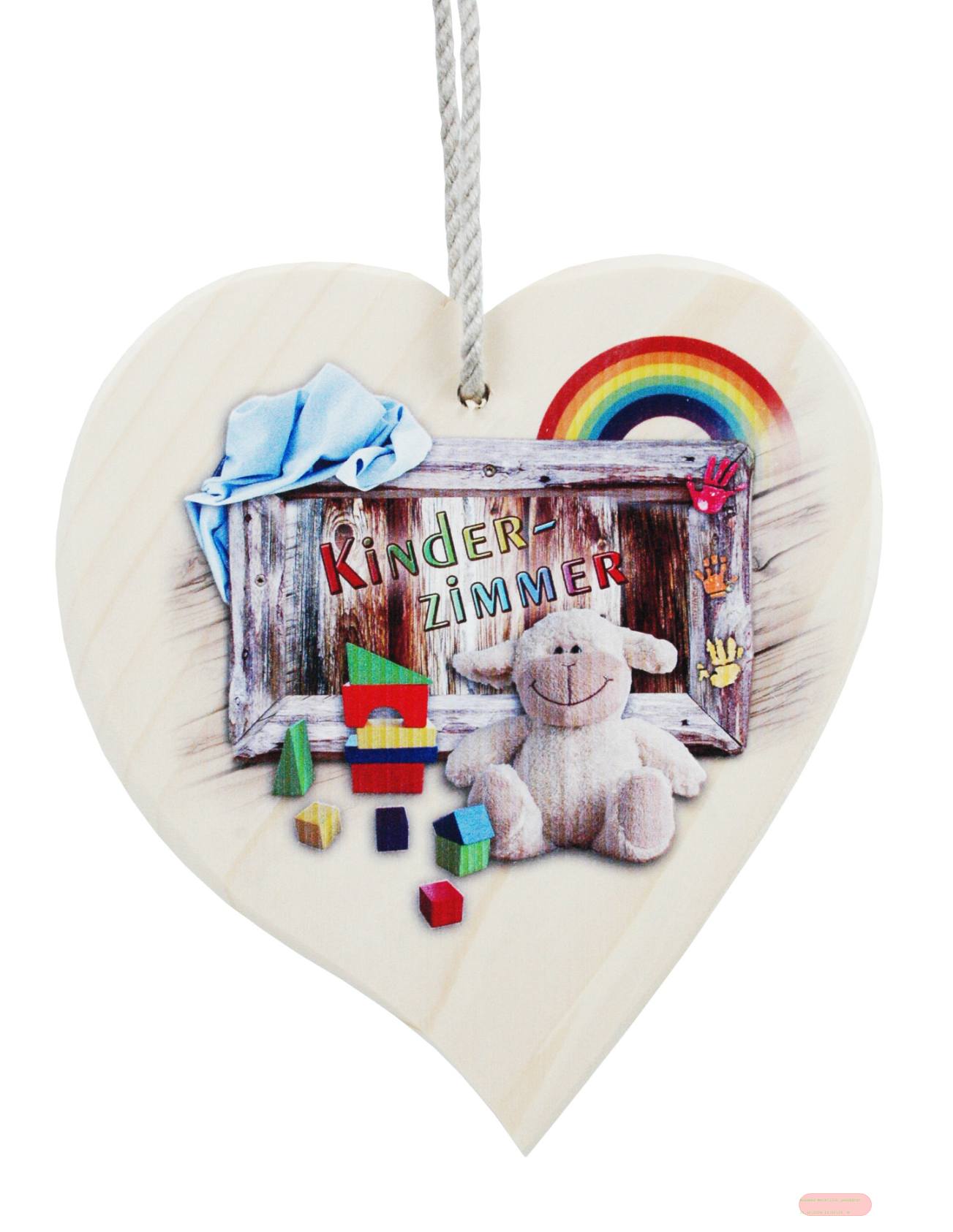 - Spruchherz Holz mittel, 15x17cm, Fichte 15mm mit Kordel, Kinderzimmer - VE 4