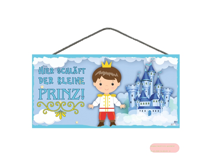 - Spruchschild 25x12,5cm, Sperrholz 8mm mit Kordel, Kleiner Prinz - VE 3