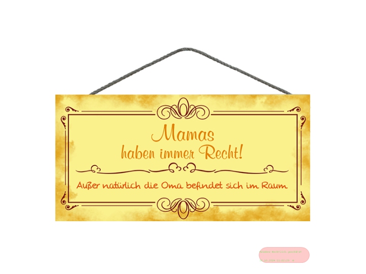 - Spruchschild 25x12,5cm, Sperrholz 8mm mit Kordel, Mama's haben immer Recht - VE 3