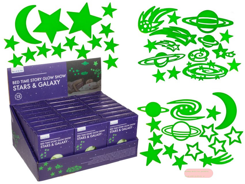 - Sterne und Galaxie, leuchten im Dunkeln, 15er Set,3-fach gemischt, Box, im Display - VE 24