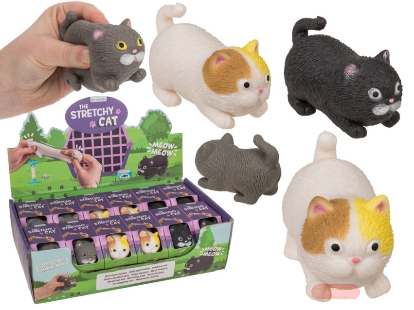- Stretch-Katze, ca.9cm, aus TPR, mehrfach gemischt, in Box, Display - VE 24