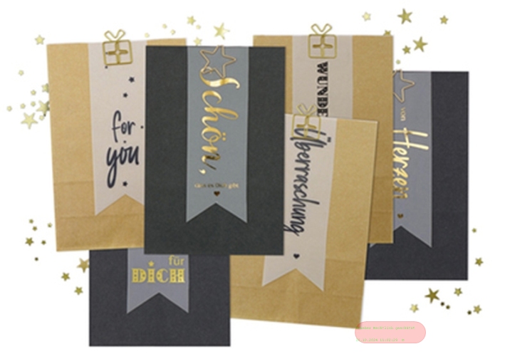 - Tüten Kraftpapier mir Klammern 12x18x6cm, 6 Designs gemischt, 60 Stück lose Nachfüllpack