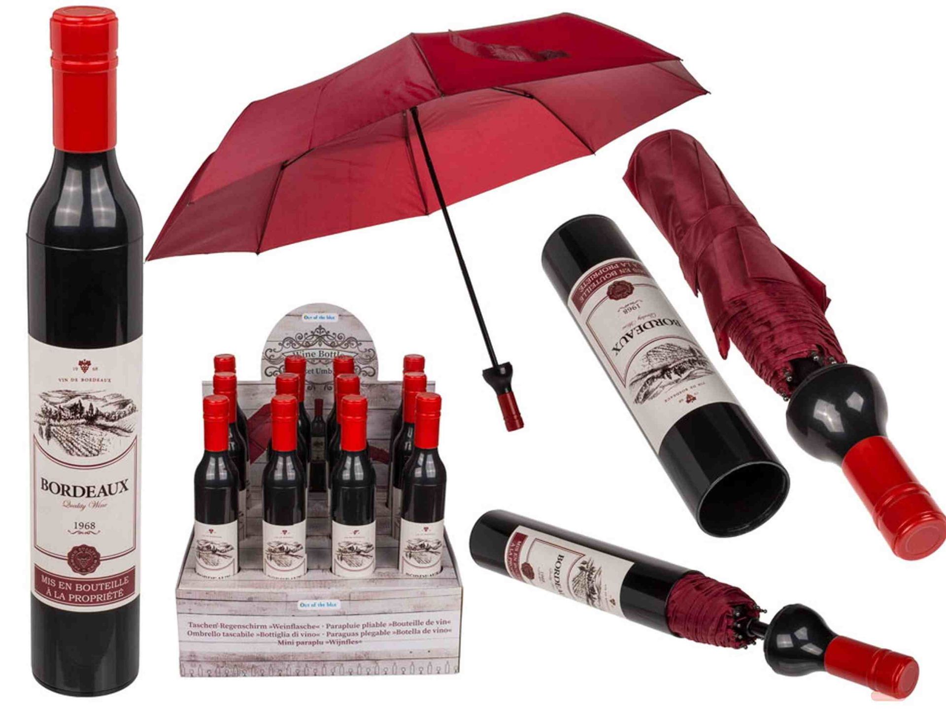 - Taschenregenschirm Weinflasche Rotwein, D:90cm, (Display nur mit VE 12) - VE 6