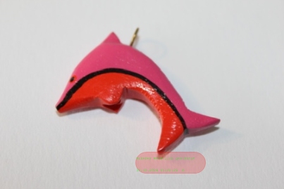 - Tieranhänger Holz farbig, Delphin pink/orange - VE 12