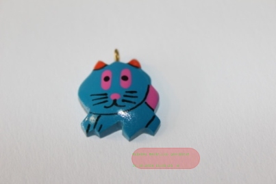 - Tieranhänger Holz farbig, Katzenkopf blau - VE 12