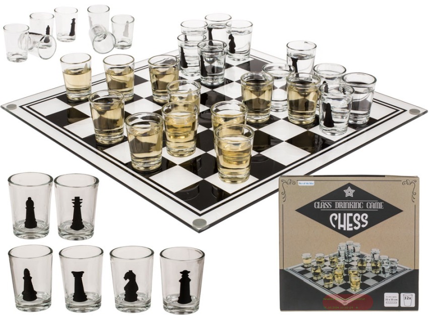 - Trinkspiel Schach mit 32 Gläser à 20ml, ca.35x35cm, Box - VE 3