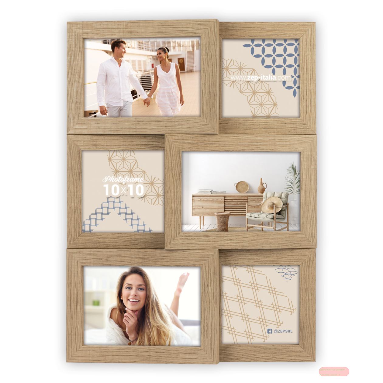 - Wandbilderrahmen Holz Brescia für 6 Fotos, 3x10x10 3x10x15 (30x40), ZD57B