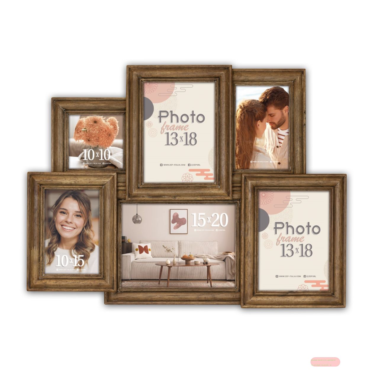 - Wandbilderrahmen Holz Giverny für 6 Fotos, 10x10 2x10x15 2x13x18 15x20 (54x41) ZL496